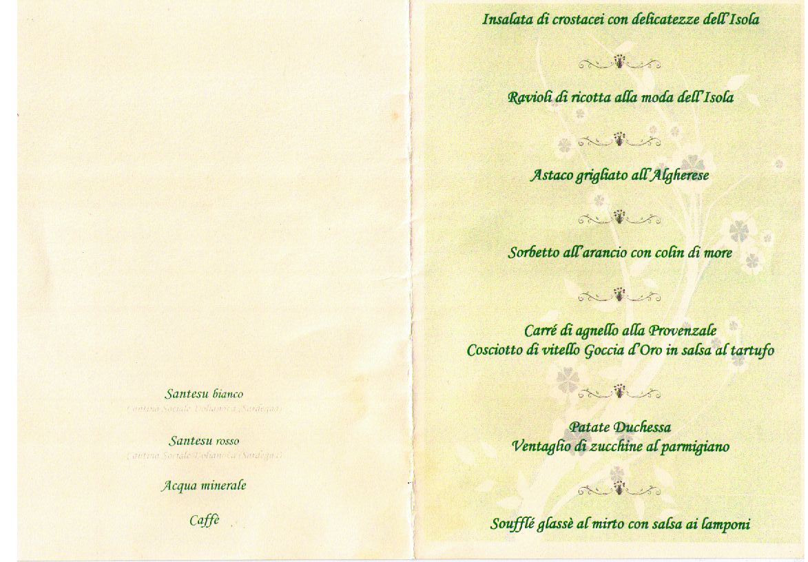 Banquet menu.